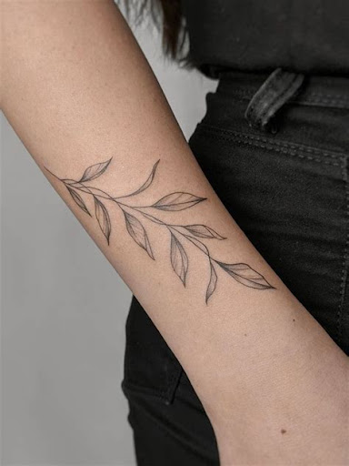 A leafy branch tattoo encompasses several leaves and branches to mimic nature's appearance in a simple way.